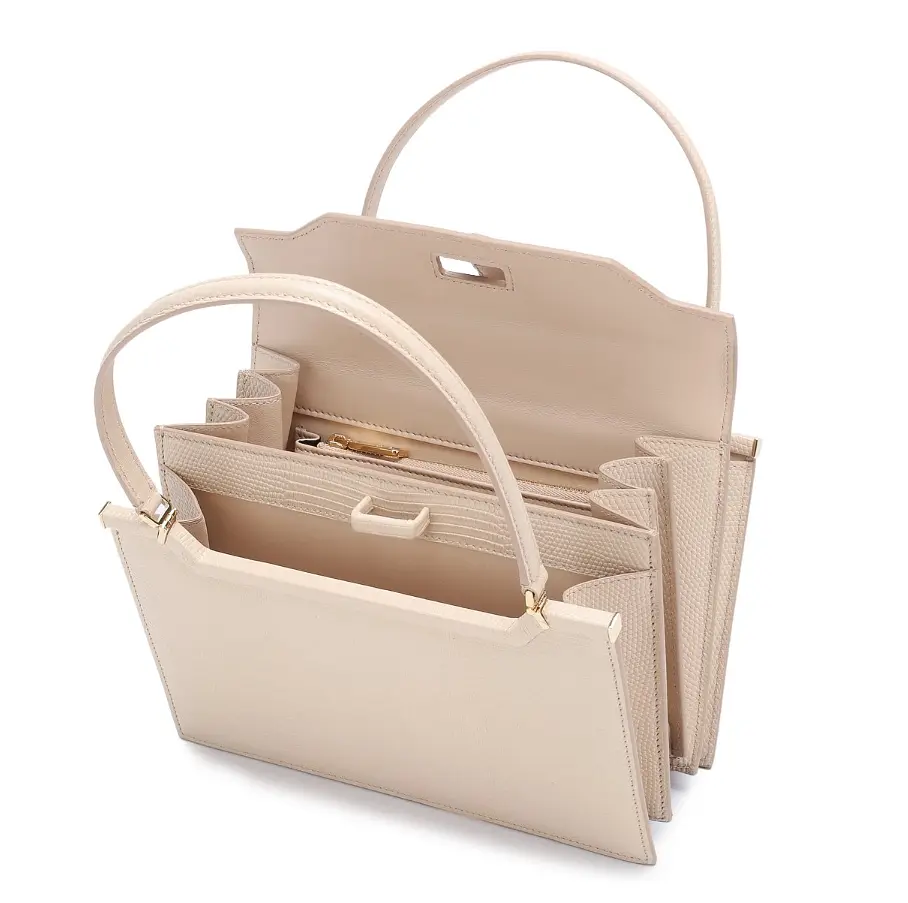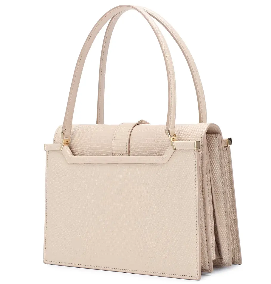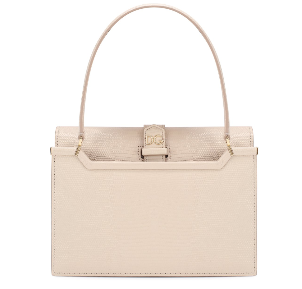 Светло-бежевая сумка Ingrid из осенне-зимней коллекции 2019 года умело справляется с многозадачностью. Модель достаточно вместительная, чтобы заменить любимый повседневный аксессуар, но в то же время ее можно носить вечером вместо клатча. Для создания изделия Доменико Дольче и Стефано Габбана выбрали мягкую прочную кожу с тиснением под ящерицу.
